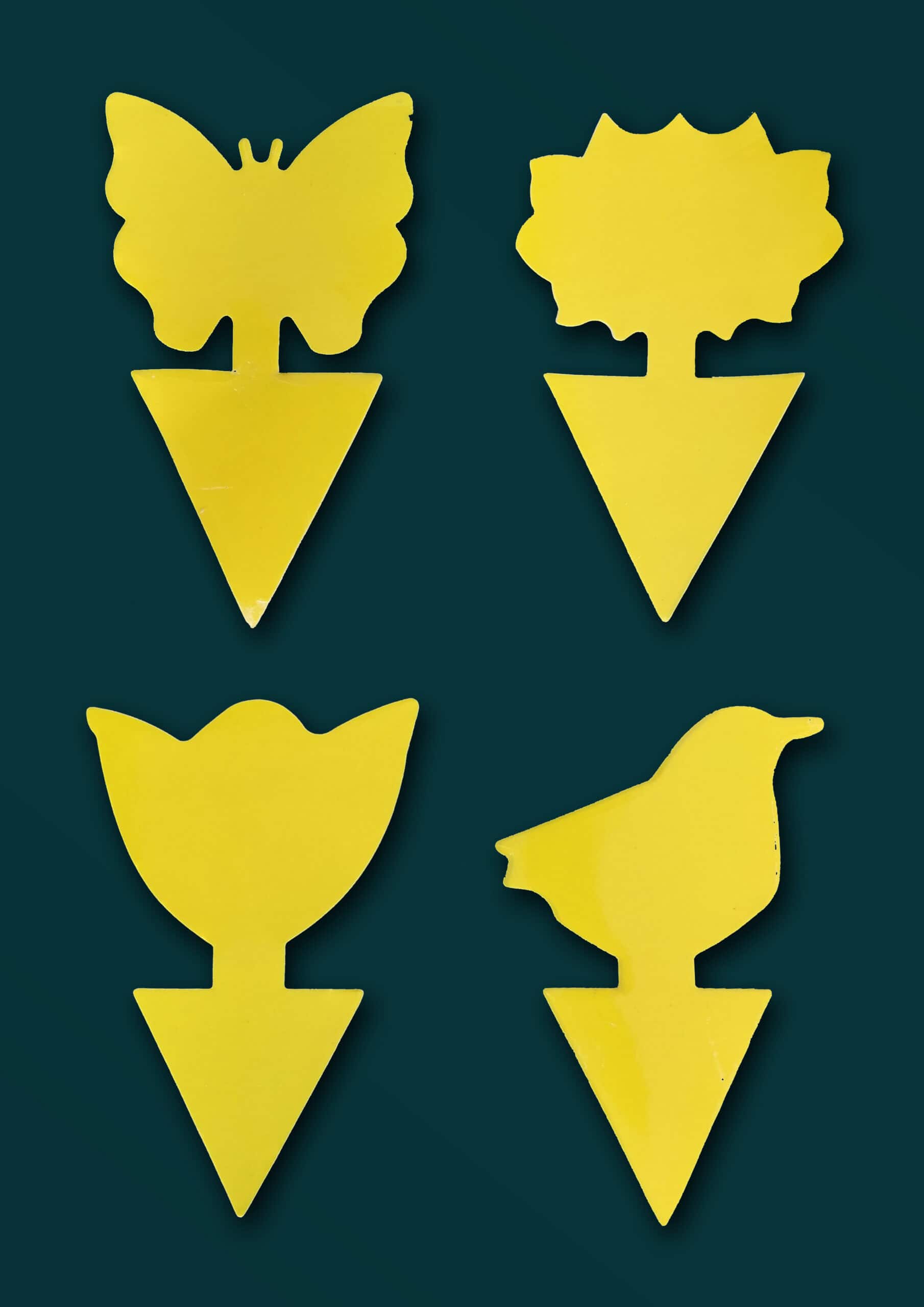 Sticky traps for houseplants, effective for trapping flying insects, in particular Fungus Gnats and Thrips. Mixed designs.